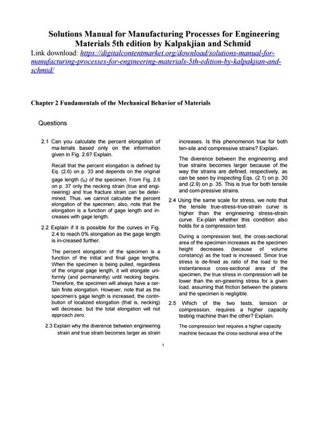 Download Solution Manual Manufacturing Processes For Reader PDF